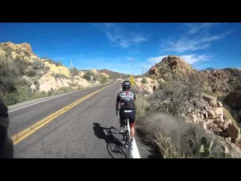 Alas, with his bike delivered, Monday's ride had reinforcements, making us an Army of Three, hell bent on conquering the cactus strewn climbs of Apache Junction, AZ. What follows are the latest pics and vids from Monday's and Tuesday's rides. What you'll see is more of the same; desert, cactus, some gradual grade climbs, and a lots of tall rock faces.